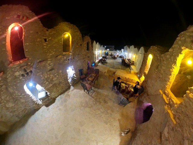 しかし、食事が終わると地元のチュニジア人たちは次々と帰っていきました。気が付くと、クサールの中には私たち一組だけが残されていました。車を停め直しに外に出てみると、夕方にはびっしりと並んでいた他の車がすべてなくなっていて、その変化にびっくりしました。まるで魔法にかかったかのように、賑やかだった空間が一瞬で静寂に包まれたのです。