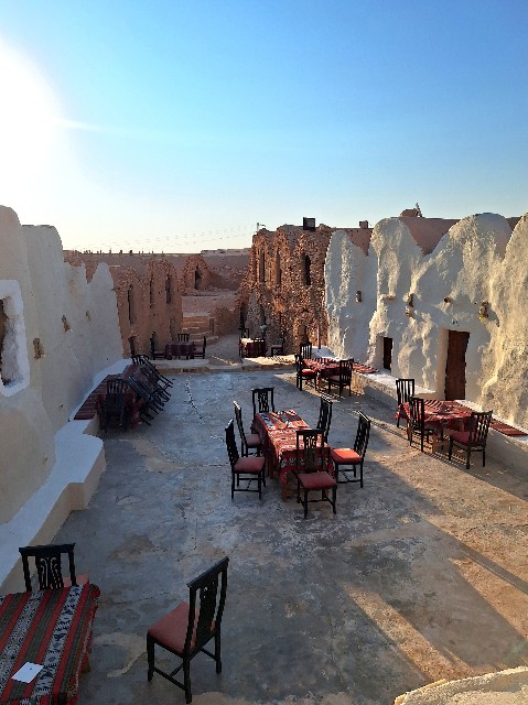 ちなみに、Ksar Hadadaは立体的な多層構造になっているのも魅力の一つです。2階部分はカフェとして利用できるのですが、完全に屋外になっているため、日中の利用は暑さで少し辛いかもしれません。ただし、写真映えは間違いなく抜群で、インスタグラムやTikTokには最高のロケーションです。
