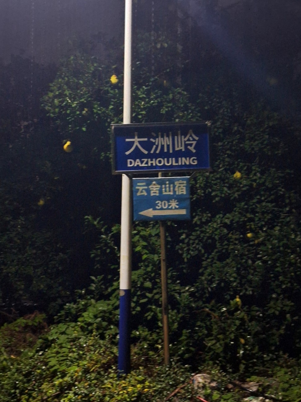 やがて「大洲岭」と書かれた標識と「云舍山宿30米」と記された案内板が現れた。もう宿は目前だ。